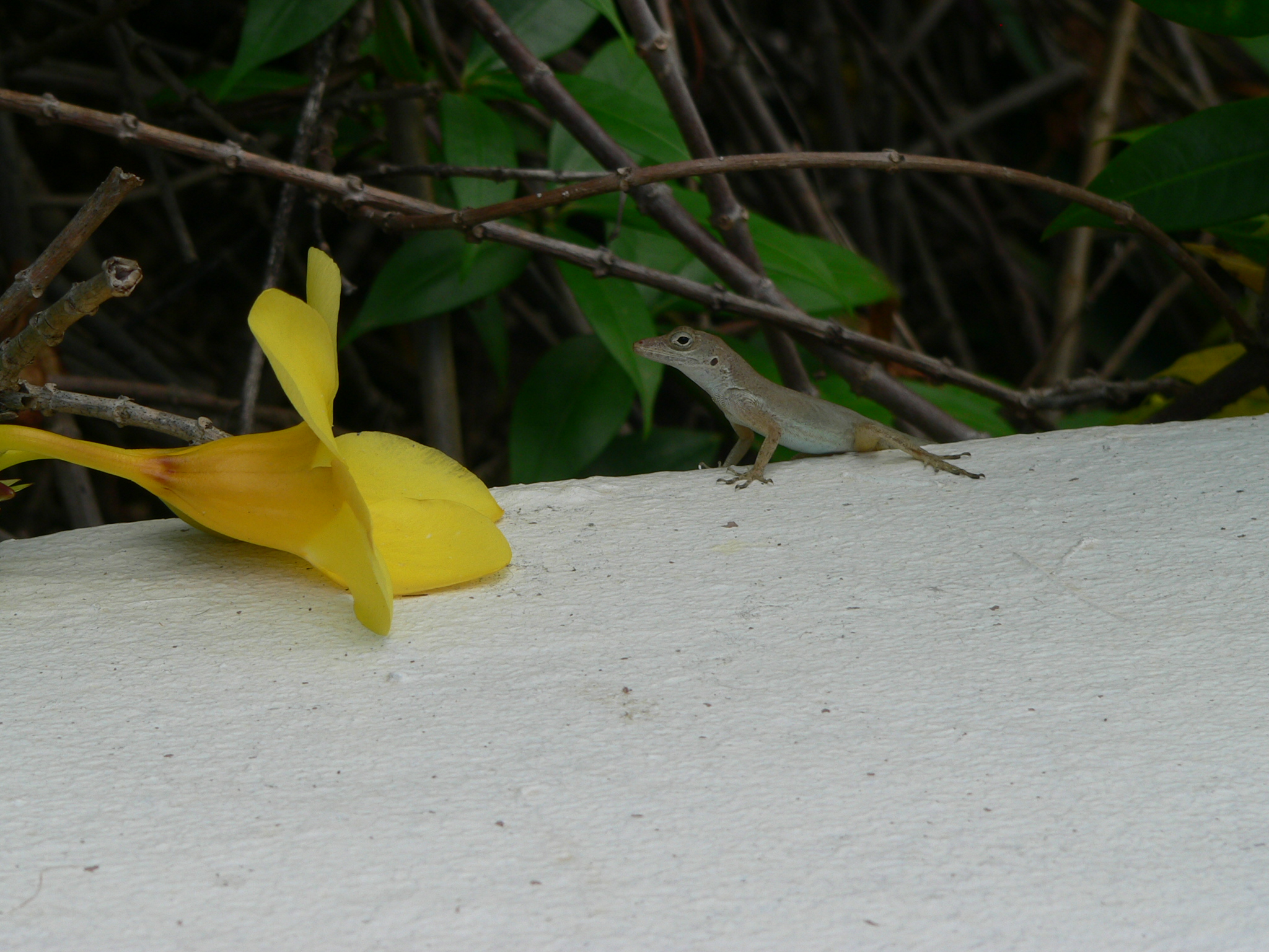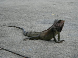 One of the things I’ve learned about since I first came to the Caribbean is lizards. At first, I was enamored with the large iguanas. They are so prehistoric, Godzilla-like. I liked them at first, mostly because of their novelty. But then the novelty wore off and I learned how destructive they are – in the Spring, they dig deep, deep holes. Sometimes these caves are seven or eight feet in length, and at the end of them, is a clutch of sixty or more eggs, ready to spew forth a whole new company of neon green babies to contend with. Not my friends since I live on the side of a hill. Karl and I enjoy harassing the iguanas now, and do so whenever we see one.