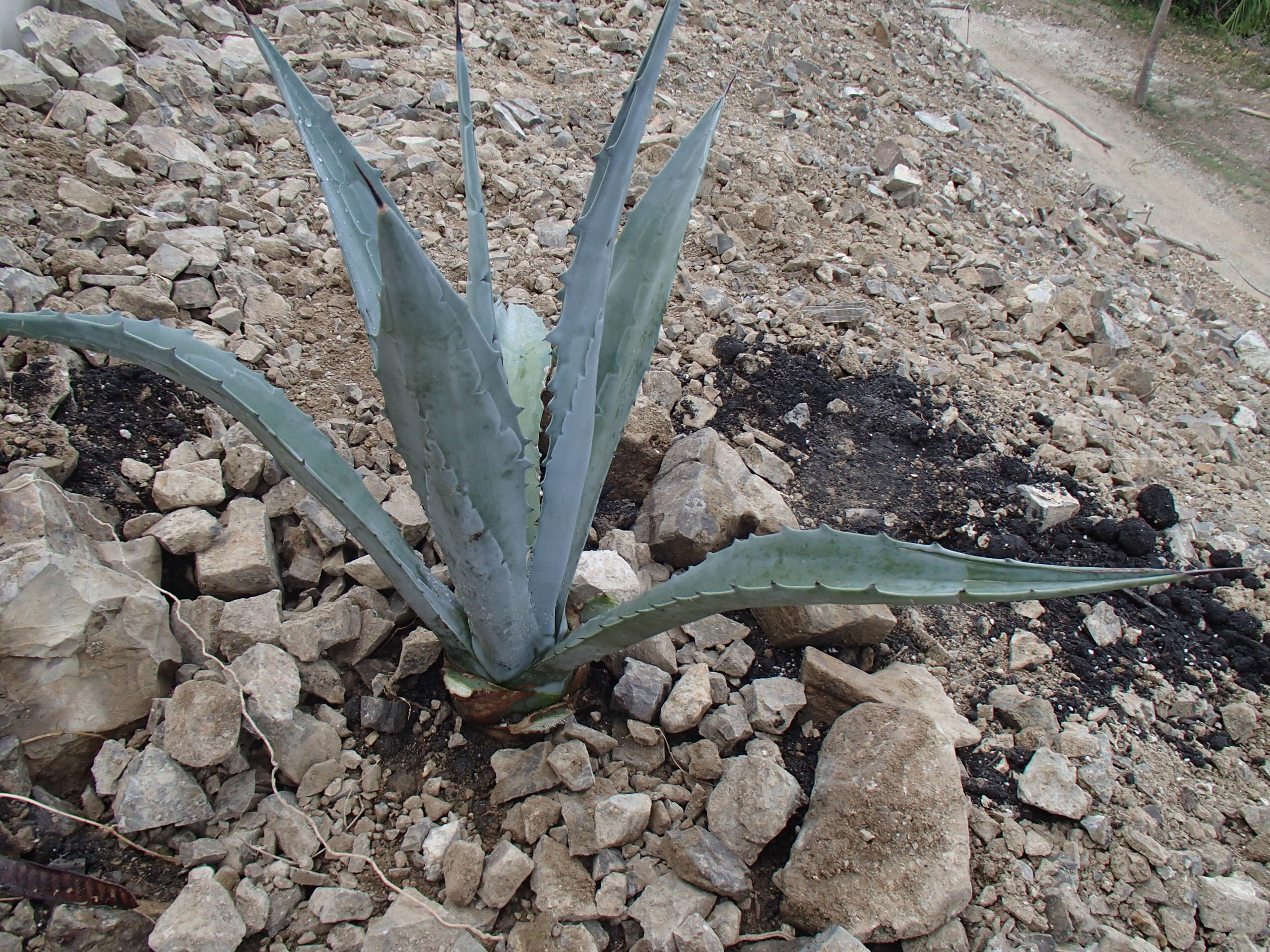 Since the terrace faces the west and is subject to intense heat and sun, we decided to plant agave. We got variegated ones and also a type of agave called a century plant – which flowers once every twenty five years and then promptly dies (however, they leave behind progeny to continue their legacy so all will be well even then!). Their hearty souls will fill in the terrace with green, and with any luck they will thrive and grow to their expected 5-7 feet tall (and equal width) expectations. If all goes according to plan, they will accomplish this with very little attention or direction from us. Yay! For now, they are little, under a foot tall and wide, but we have high hopes for them. Okay, I’ll admit that I have prayed for them. I’m pretty sure God shakes his head a little when He hears my whispered prayers for safety, protection and blessing on a plant, but I also have no doubt that His love extends to his herbal creations and that He loves gardens at least as much as I do.