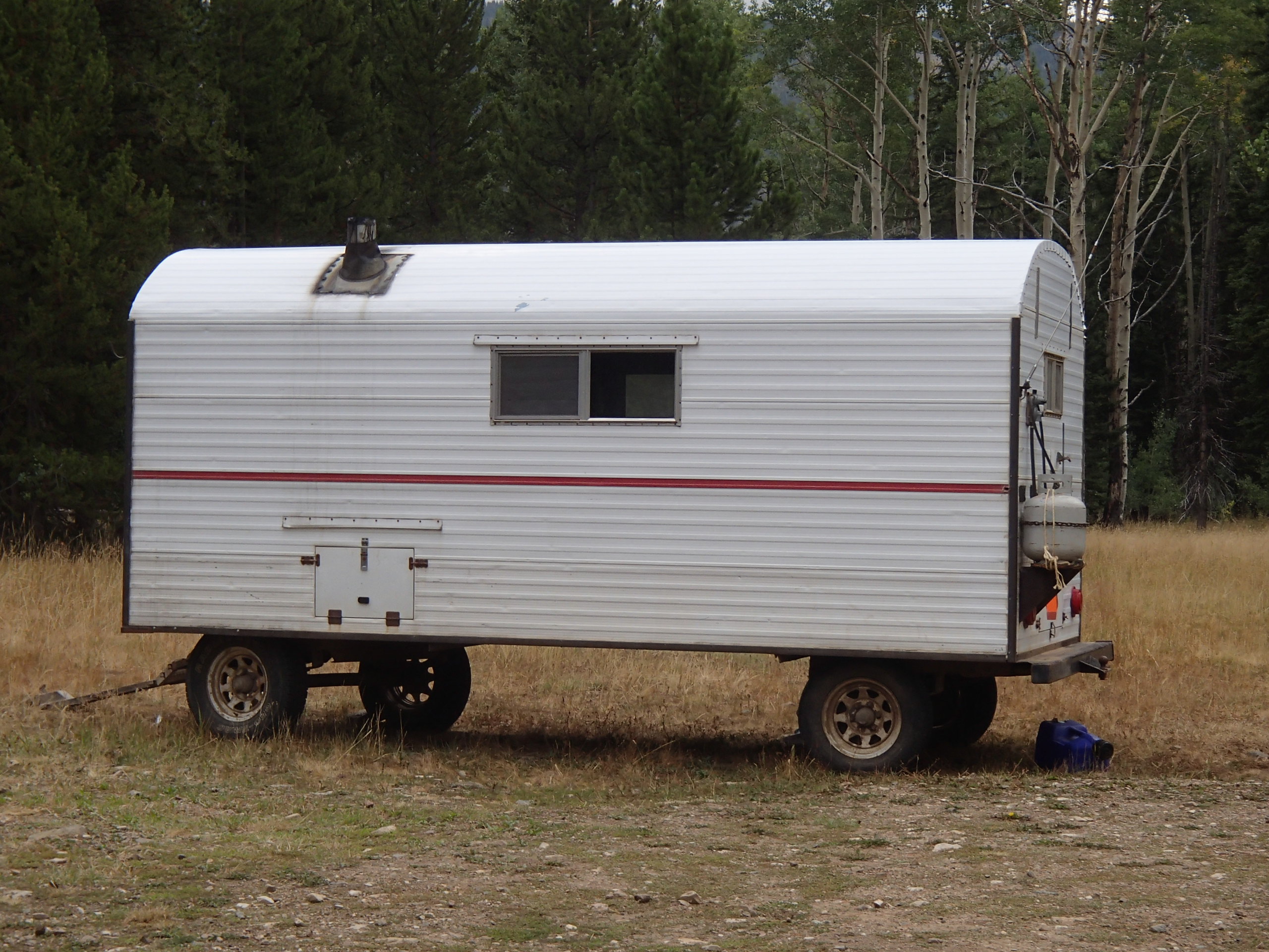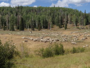 So now, the reality of my week just past: we have been camping at the trailhead that leads to a wilderness area (the exact same place Piper was riding!). It’s so beautiful here, calm and peaceful. Riding the trails on our four-wheelers has been fun, and so has just sitting. We’ve had an elk, lots of deer, and a fox walk right through our camp, the wind sighs peacefully above us through the trees, some of which are beginning to turn vivid yellow (also just like in Archer’s Perspective!). We haven’t been totally isolated. Twice friends have come up to spend time with us, and nearly every day someone we don’t know comes and parks nearby, waves hello then grabs a day pack and sets off into the woods for a hike. (This is a trailhead!) Also added to our camping experience has been a large herd of sheep who are grazing nearby. The sheep wagon is parked right next to us, though that isn’t where the herder stays, it’s only the base camp for supplies. We’ve met and talked with the people who own the sheep when they come to bring supplies to the sheepherder, and we’ve met the herder himself. His name is Oscar, he’s from Peru, and between my really malo Spanish and his limited English, we’ve gotten along famously. Not that we see him or the sheep often, but just once in a while. The occasional chiming of the sheep bells has added to the fun of the trip.