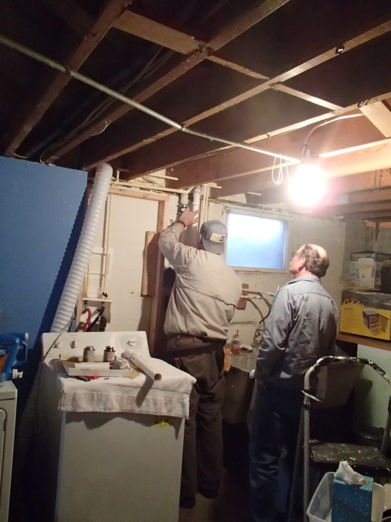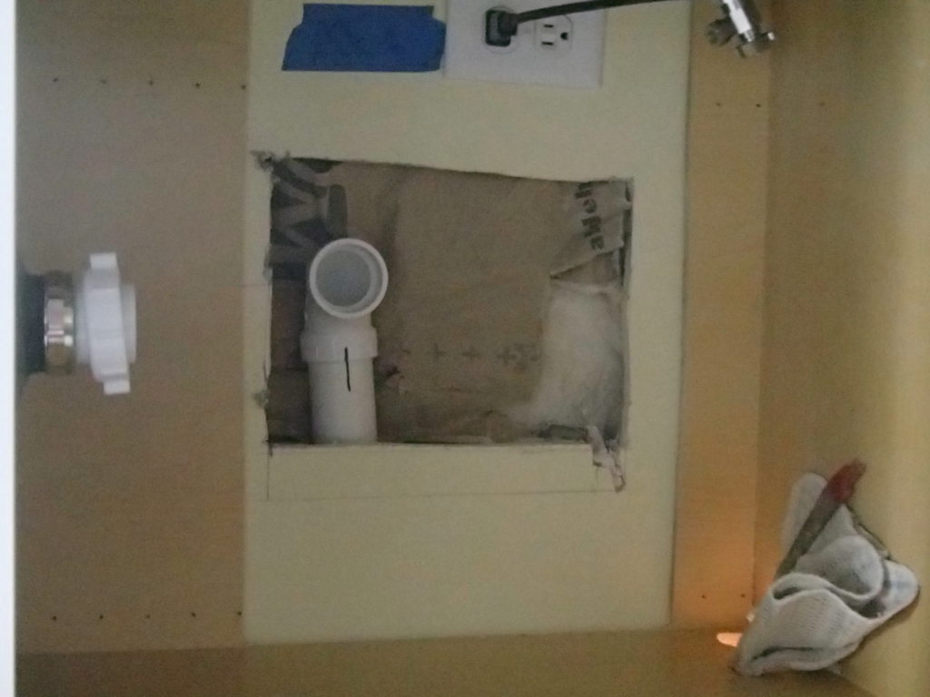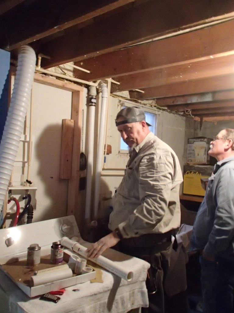 Five months ago today Karl and I closed on our ‘new’ Cheyenne house and began the work of remodeling it. As I mentioned, due to the cold weather a couple of weeks back, we moved into the house, but it isn’t done. Mostly what is undone is cosmetic detail…woodwork, door and window casings, things like that. The one big undone has been the kitchen. We were all excited last Monday because the guys came to install our kitchen counter. We anticipated that by Tuesday we’d have a fully functioning kitchen. This was just not to be. Background: as part of the remodel Karl replaced all the sewer lines in the house. All that is except one. Yes one. The drain in the wall for the kitchen sink. He inspected it and decided that since it was a solid-looking and substantial steel pipe that would be a royal pain to replace even before the new sheet rock went on, that it would be fine.