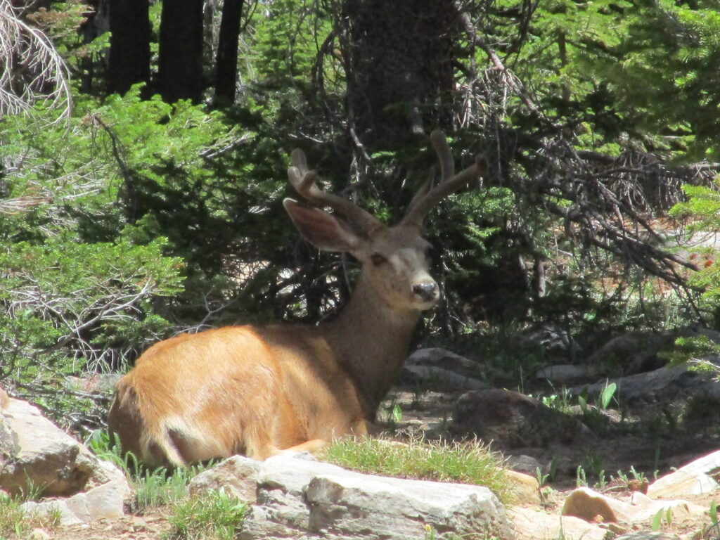 *A deer resting in the shade of a stand of pines, so totally unimpressed with my presence that he allowed me to notice him, stop my bike, back up for a better view, call Karl on the walkie to summon him back to see my new friend, and for us to take lots of pictures.