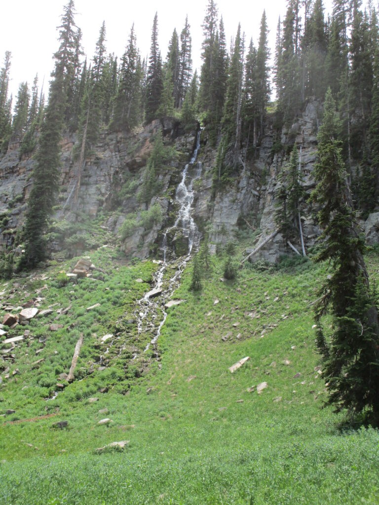 *Crossing a small creek running across our path, then meeting up with that creek again a few minutes later as it tumbled over a cliff in a jubilant dance to a deep green meadow.