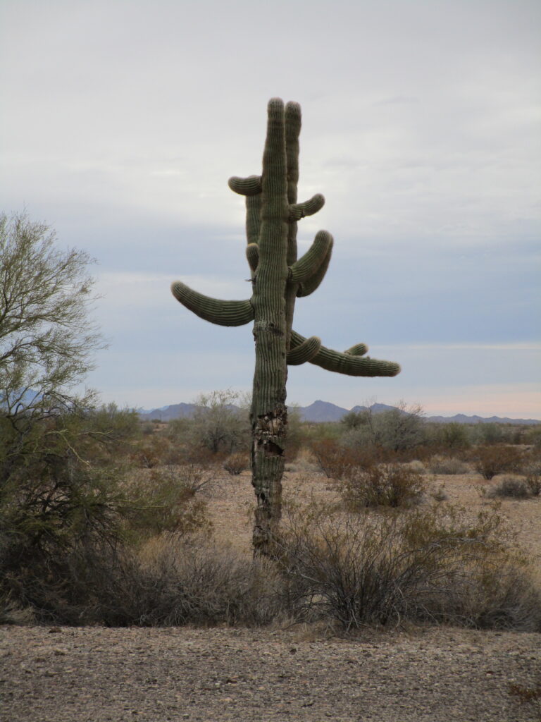 Even so, it was a grand and stunning day filled with blessings and wonderful encounters. We marveled at ocotillos green from the recent rains, an unexpected arch, at the saguaros so stoic and brave, at more wild burros, and at the freedom of unencumbered sky and wind. Though thousands have come before us on this road, we had the joy and excitement of exploring and discovering this wild place for ourselves. Even the attack of jumping cacti came with blessings: I’m told many people have a bad reaction to this kind of attack that includes swelling and pain, I just have one little mark. And, to tell the truth, I’m thankful I was set upon by the cholla when I was instead of just a few moments earlier when I was squatting….well suffice it to say that a barb in my ankle was preferable to other places!
