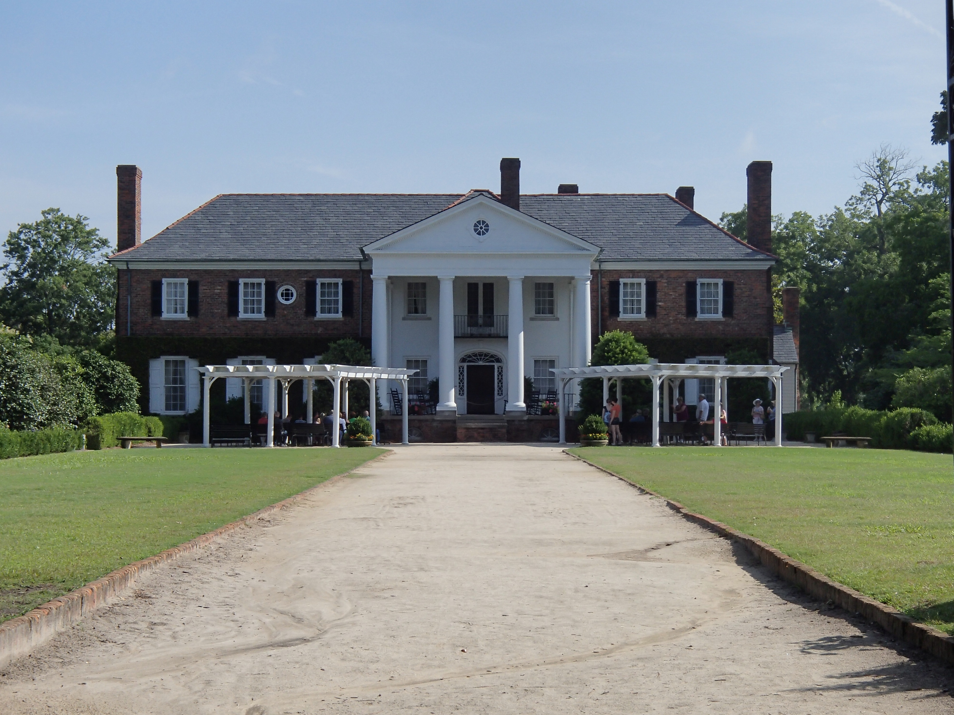 Boone Hall. This plantation first grew a plant called indigo, used to make blue dye. Then it grew cotton, then they made bricks. Nearly all the labor was done by slaves.