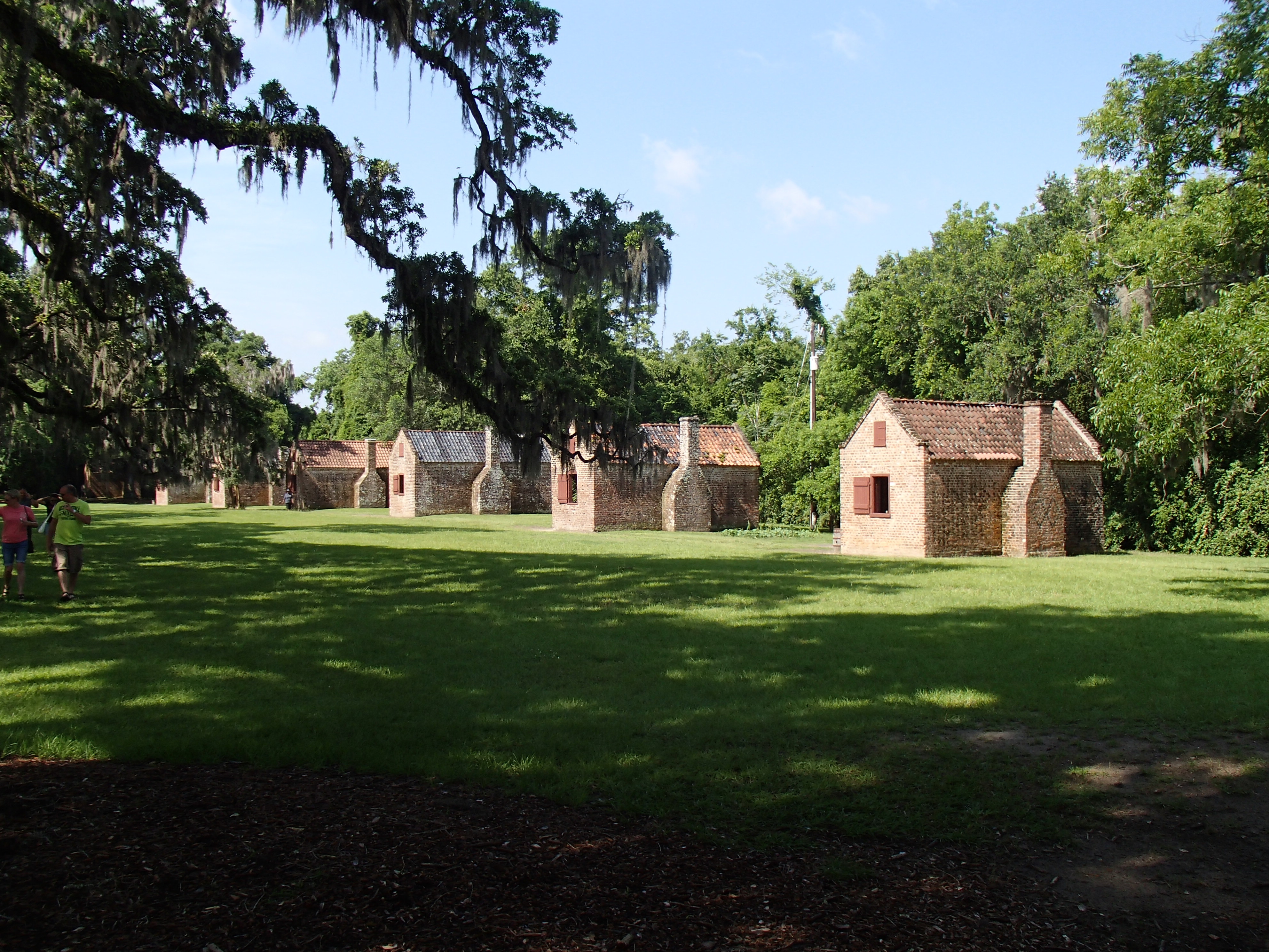 Slave houses sit all in a row. The one closest to the mansion usually was used as a church, so that slaves could worship on Sundays and the masters could keep an eye on them.