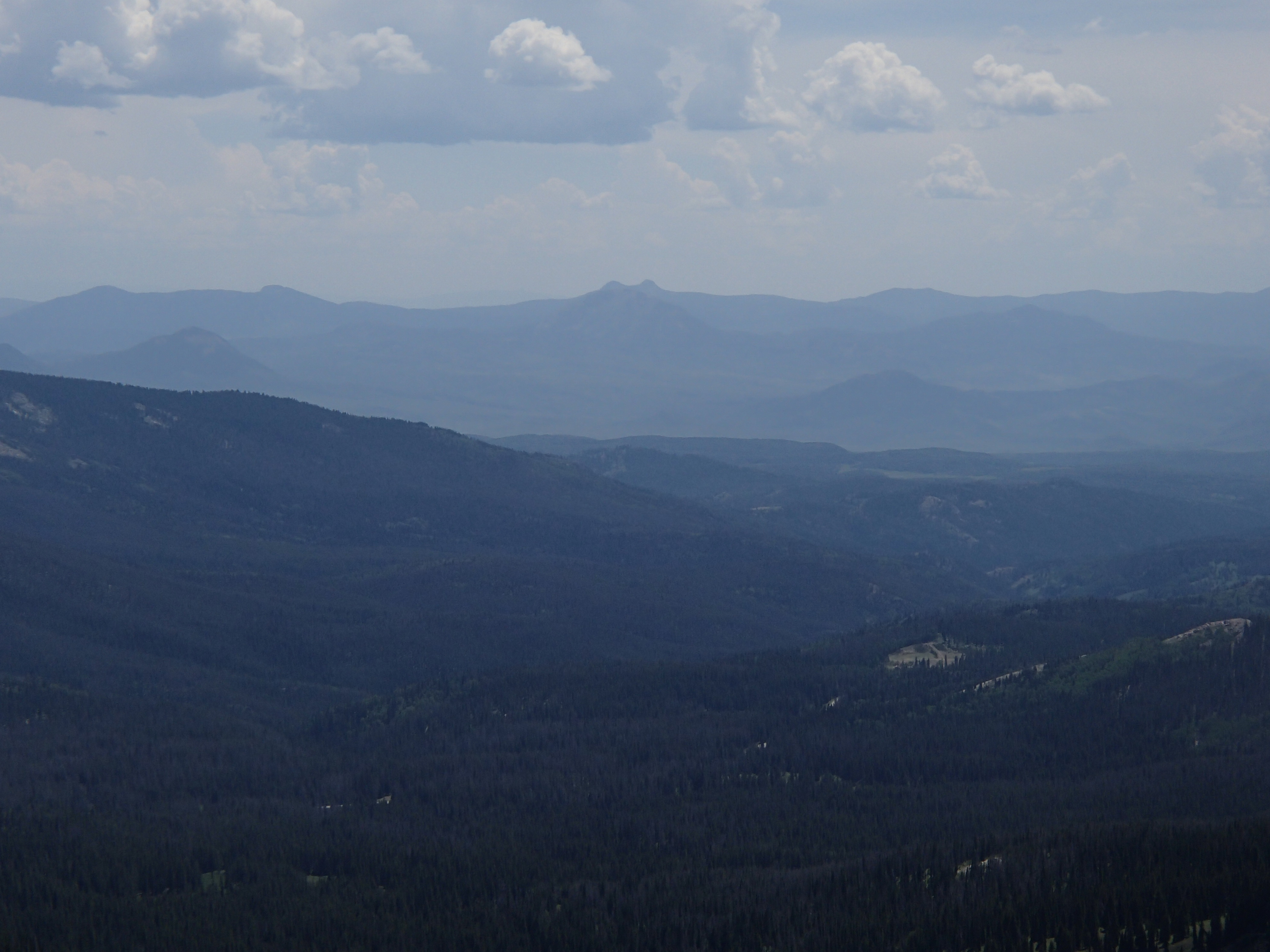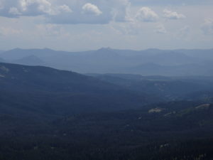In my last post I didn’t tell you that when we came back to town from camping with the grand girls and Hillary, we just left our camper there so we could go back up. We left on Tuesday with the intent of staying a week. On Thursday, two friends came up (love you, Branda and Dave!) to spend the night and do some exploring. It rained or threatened rain most of the time they were there – but we managed to have fun doing Bible study, playing triominoes and eating. They left Friday about noon and the sun came out an hour later. For a couple of hours. The rain returned and that evening we found ourselves sitting around the campfire, wrapped in blankets and feeling cold. I checked the temp using our truck gauge and it read 44 degrees. Yikes. We ended up coming home a couple of days early, but we weren’t discouraged or upset about the rain-out. About 30 miles south of us the Beaver Creek forest fire has been raging through all the beetle-killed trees. The rain is a God-send to the over 300 firefighters who are trying to fight it. We were happy to see much less smoke as we drove home.
