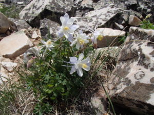 The panorama is truly unfathomable for the depth of its beauty. I could sit for hours just staring out. Hey, I have sat for hours on Bridger Peak just gaping. Something else struck me, though, on this trip. Perhaps because we’d been cold and damp, or maybe because it had been so difficult to finally get up there, but I noticed that right beside me as I sat on the rocks was a columbine plant. Blooming. At 11,000 feet and snow all around. Blooming. Delicate. Colorful. It was blooming! How can that happen when the temperature and wind are brutal and unwelcoming. How can that happen when it is just so hard up there?