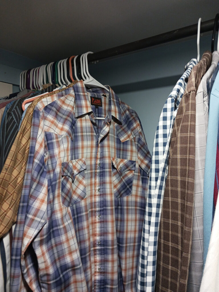 I’ll admit, since receiving that ‘talking to’, I’ve had to rehang several shirts to correct my errant ways. The thing that haunts me, though, is why it took him 41 years and 5 months to bring the subject up?