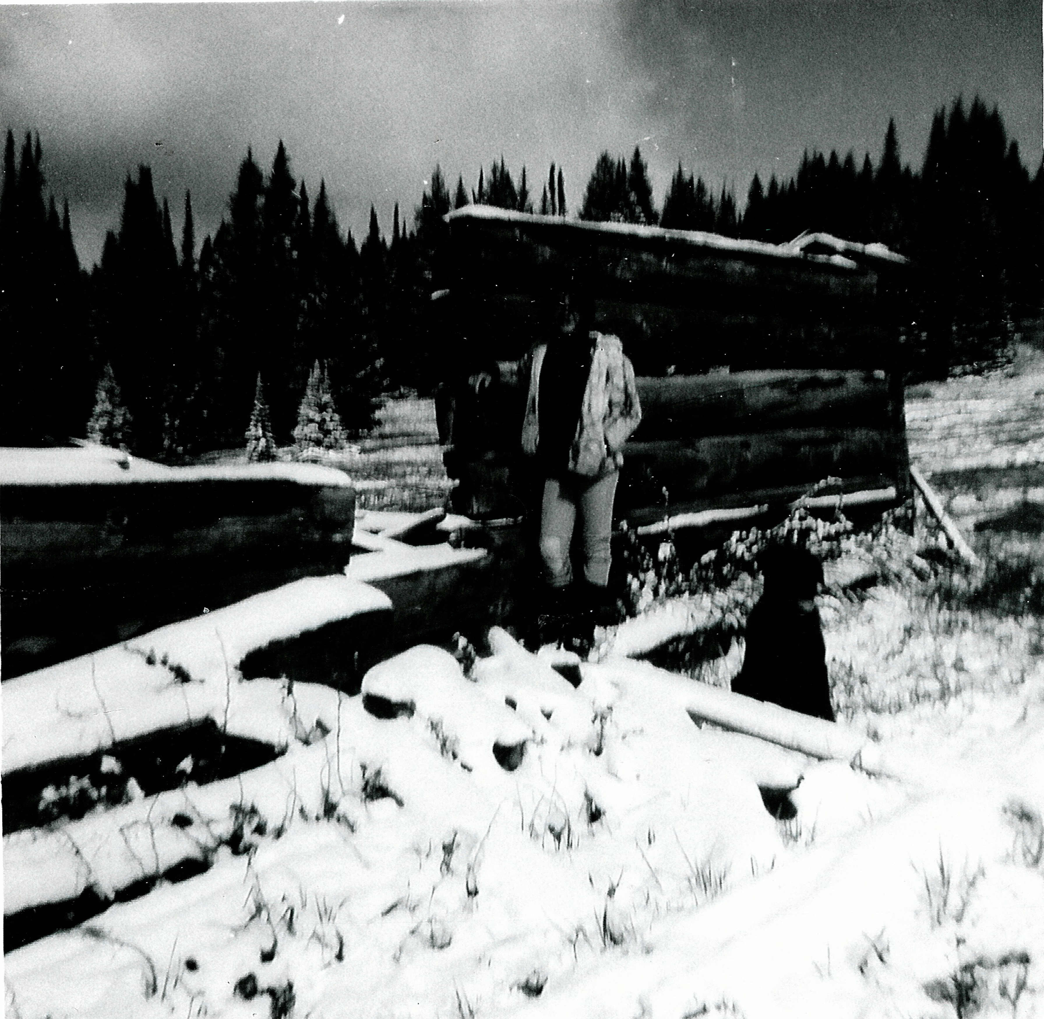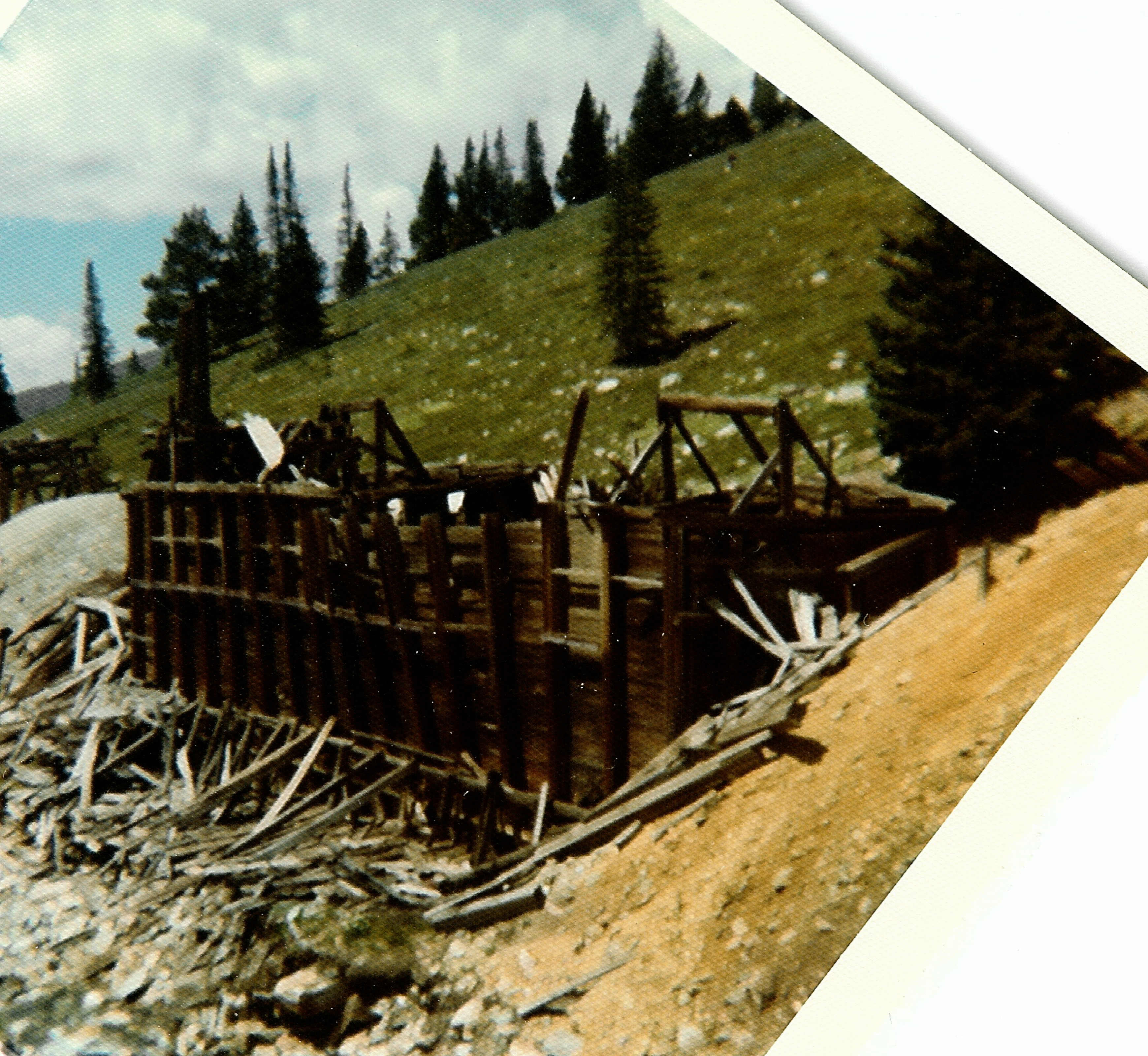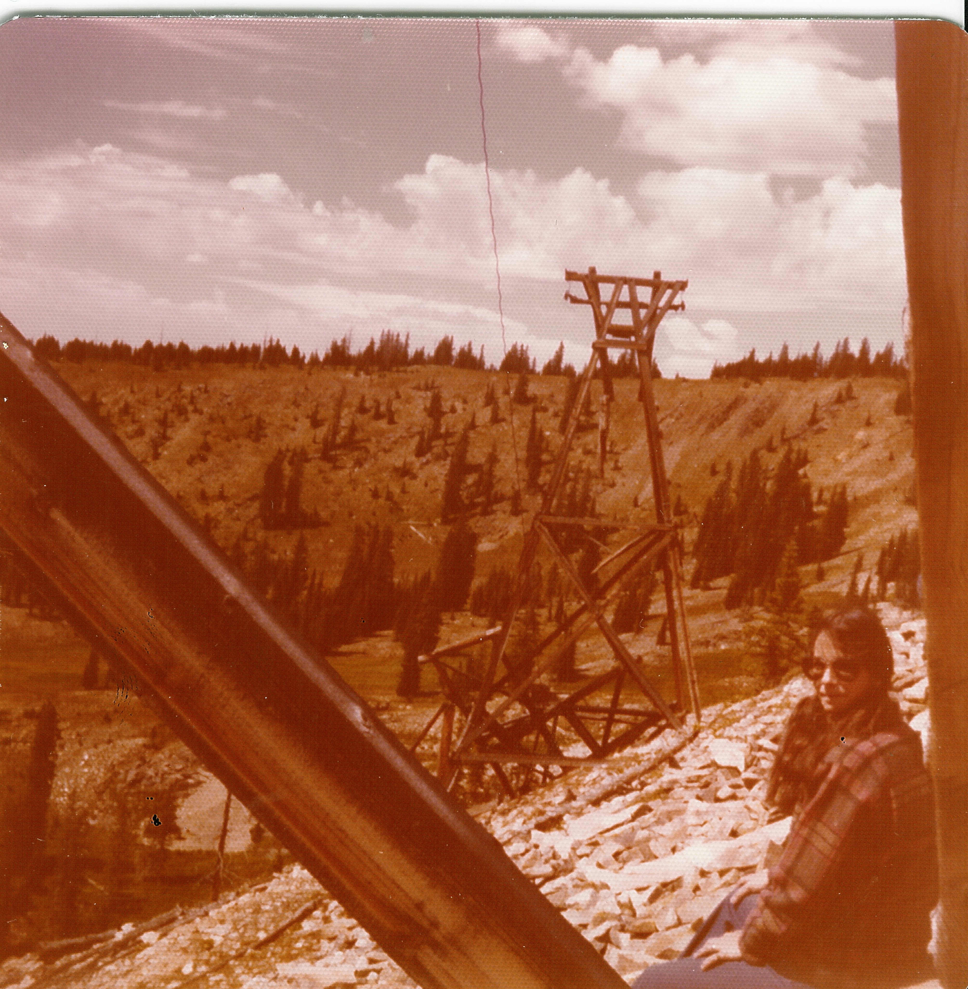 Some of the tram way stations were still standing when my Dad and I spent time each summer in the Sierra Madres. I was in high school when this picture was taken. The deep snows and high winds have now reduced these pieces of history to a few timbers and some legths of cable.